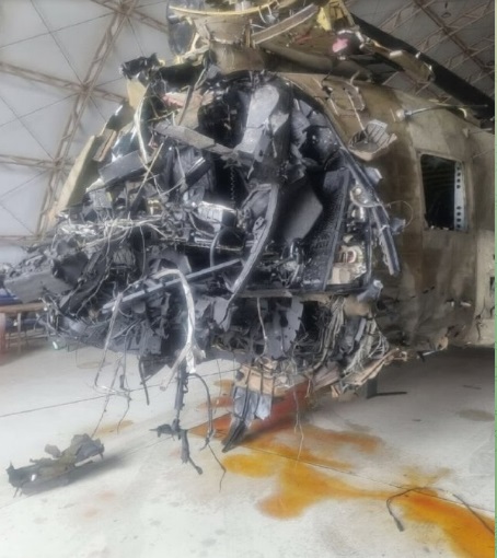 На кадрах видно, что вертолет буквально разворотило.