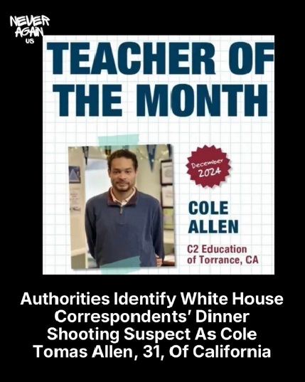 Мужчина, который открыл стрельбу на ужине Ассоциации корреспондентов Белого дома с участием Дональда Трампа, идентифицирован как 31-летний Коул Аллен из Калифорнии.