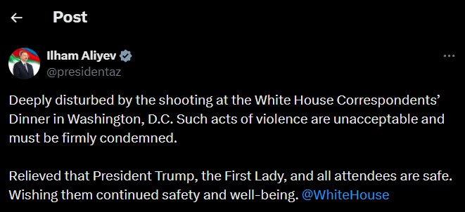 Как передает “Qafqazinfo”, об этом в своем аккаунте в социальной сети X написал Президент Азербайджана Ильхам Алиев.