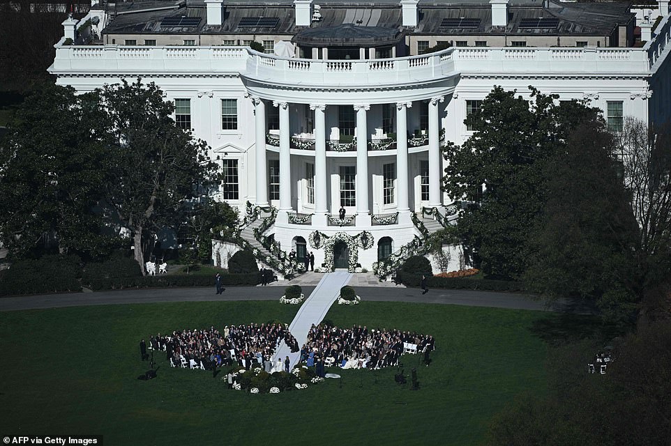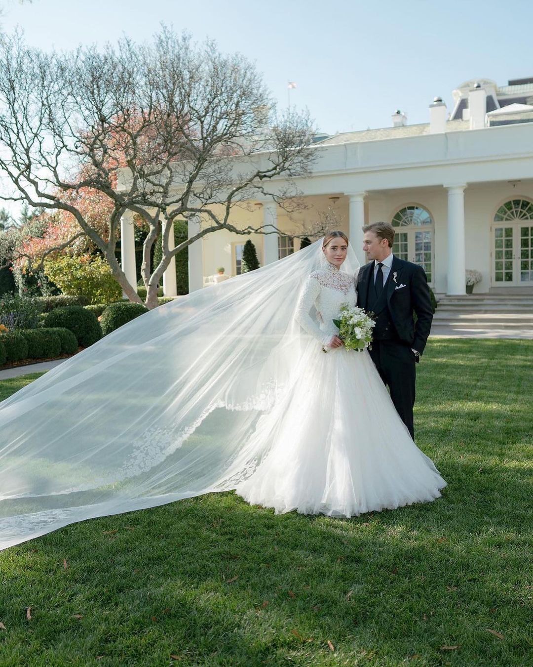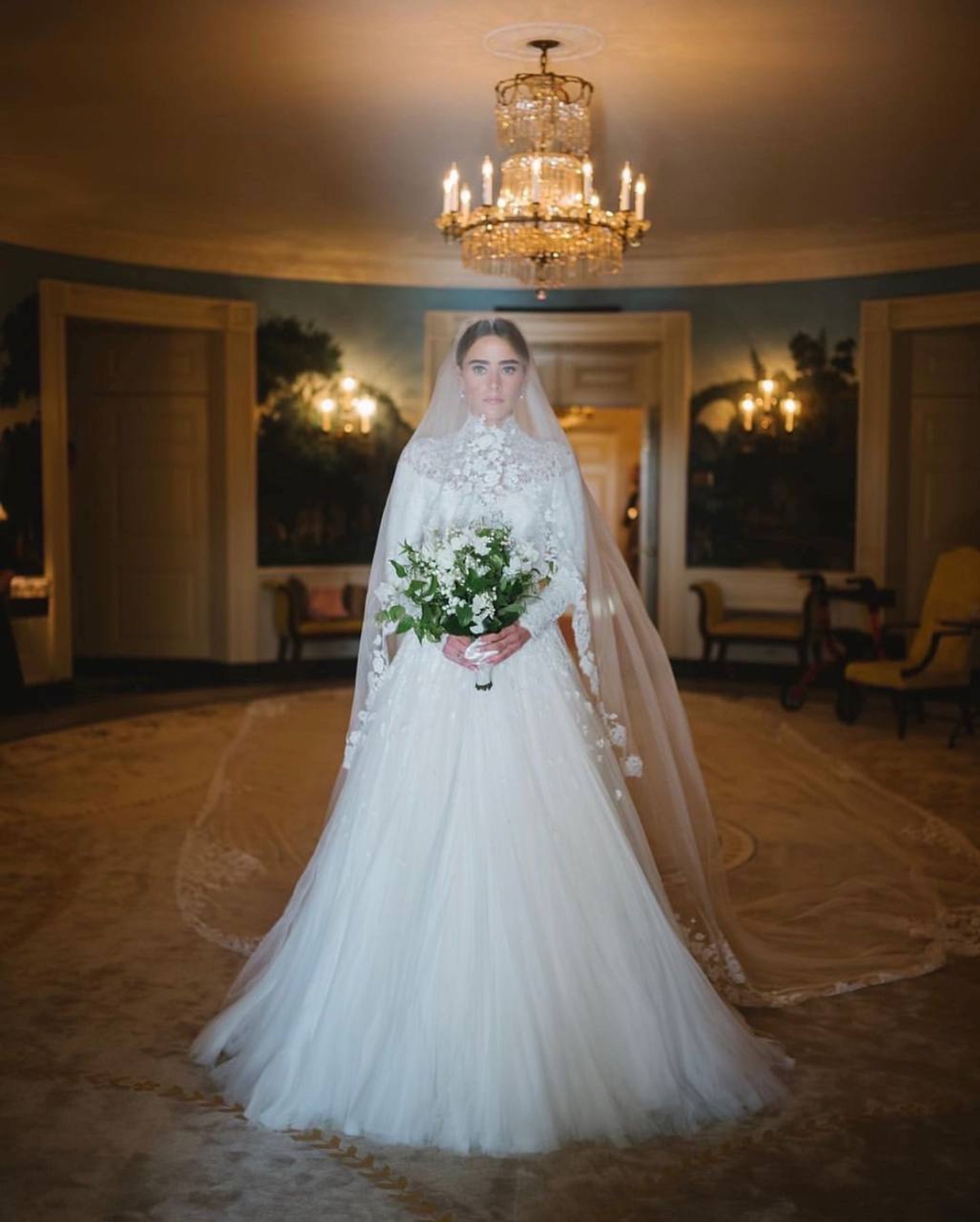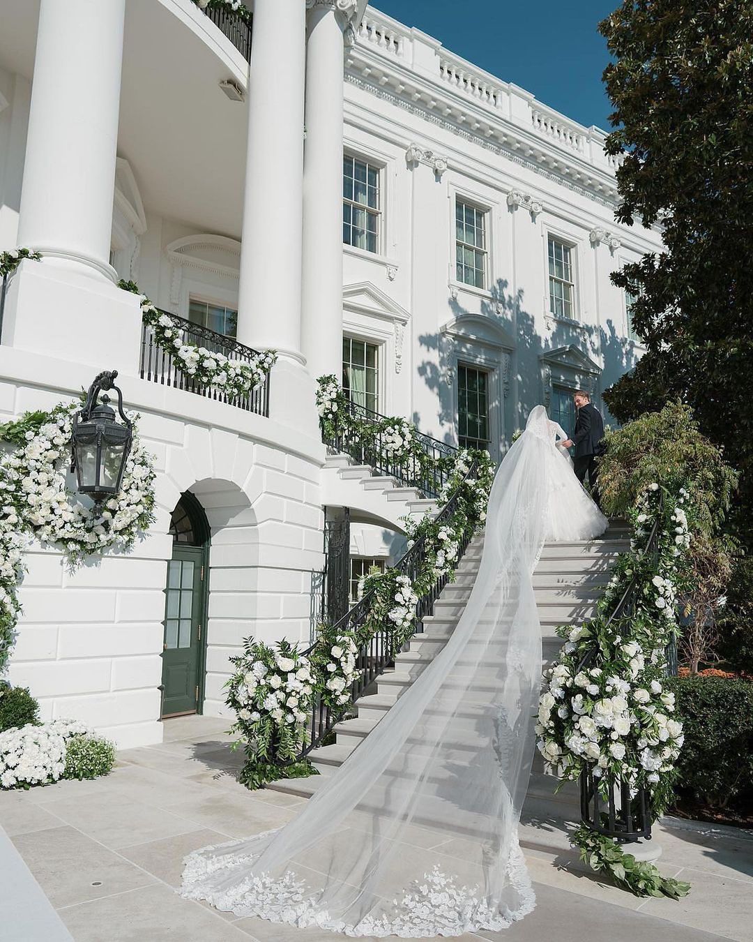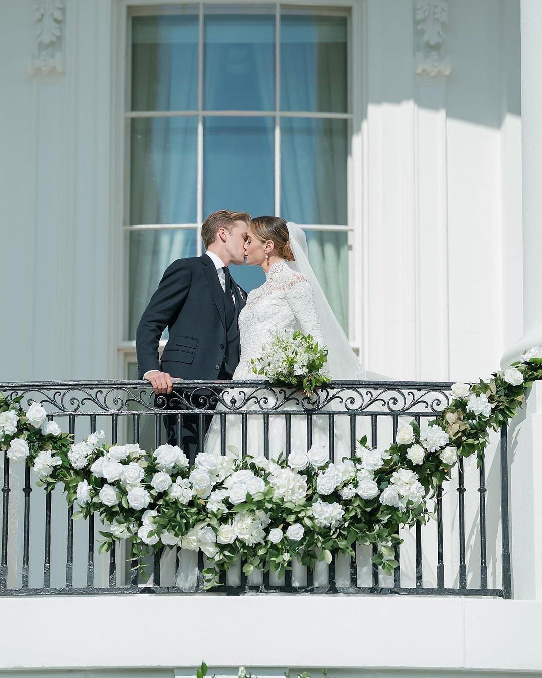 По имеющимся данным, церемония бракосочетания молодых прошла под открытым небом в Белом доме. После торжественной части близкие и друзья пары отправились на свадебный обед, а затем — на вечеринку. Невеста выбрала платье Ralph Lauren, дополнив серьгами с бриллиантами и жемчугом от Tiffany & Co.