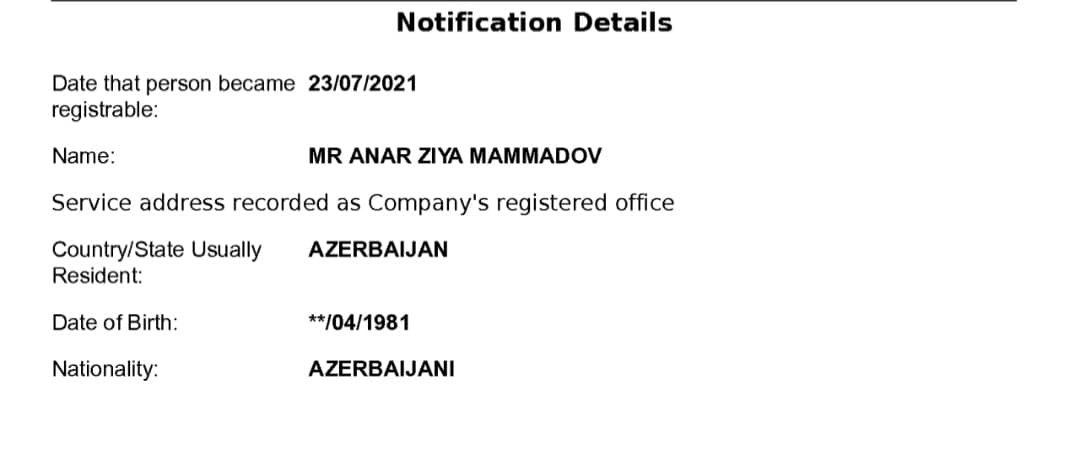 Как сообщает "Qafqazinfo", журналист-блогер Джаваншир Гасанлы заявил, что А. Мамедов владеет 41 млн. фунтов стерлингов (85 млн манатов) в компании на Виргинских островах.