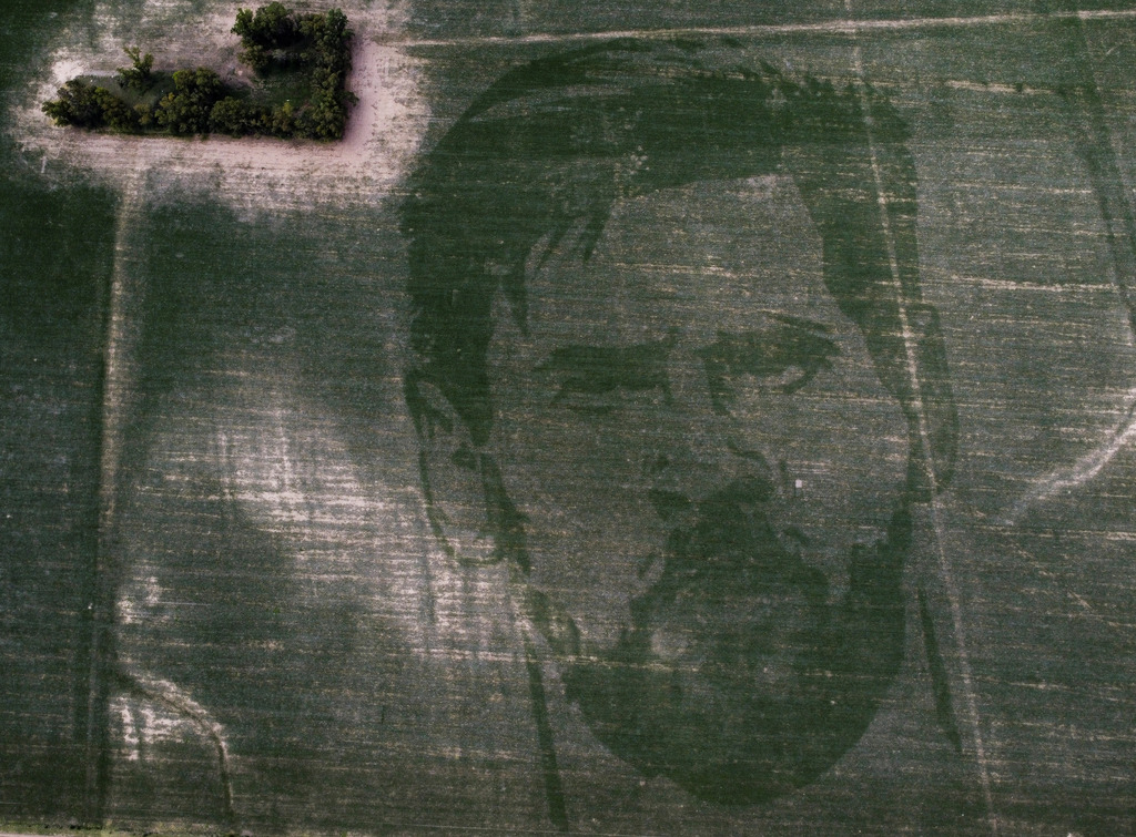 Как позднее выяснилось, местный фермер засеял кукурузное поле таким образом, чтобы взошедшая кукуруза с высоты выглядела как лицо его кумира. Выглядит фантастически, и звучит тоже.
