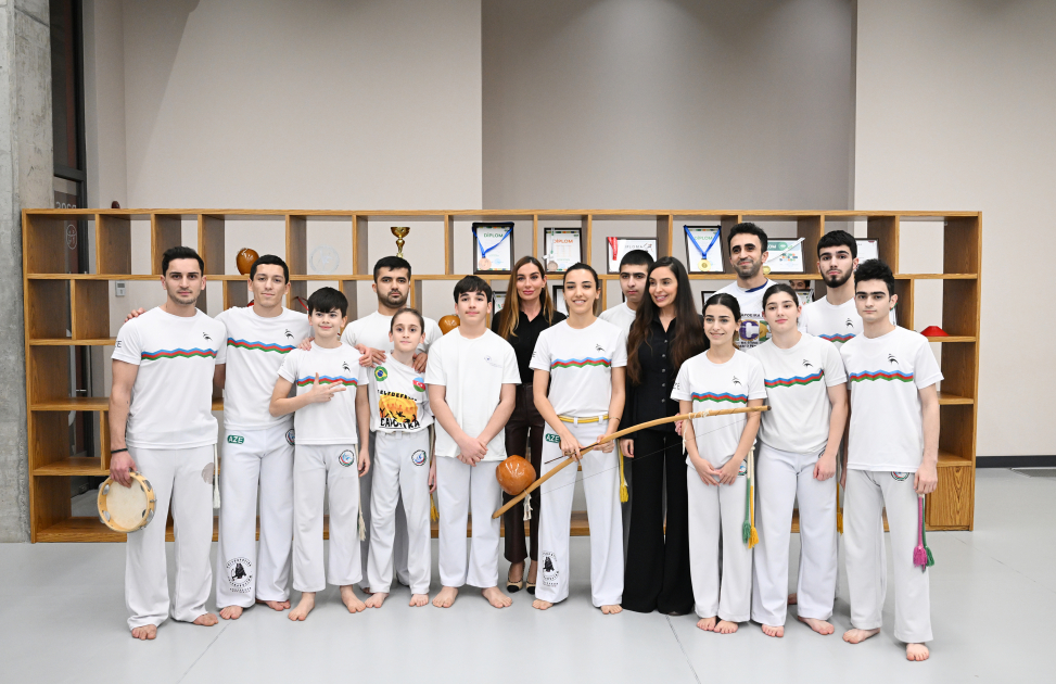 Лейла Алиева и Арзу Алиева ознакомились с учебным процессом и образцами творчества, подготовленными в студиях звукозаписи, флористики, художественной резьбы, ковроткачества, керамики, изобразительного искусства и других студиях, а также наблюдали за выступлениями тренеров и бенефициаров по капоэйре.