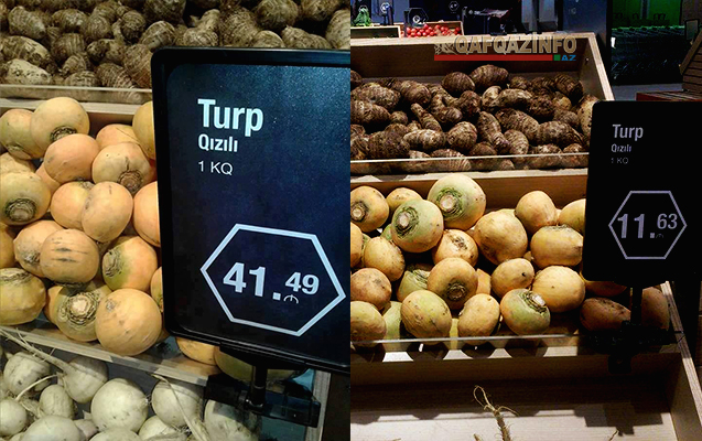 Ancaq yenə də supermarketdə 25 manata Çili bibəri, 42 manata qırmızı bibər və başqa tərəvəzlərlə qarşılaşmaq mümkündür. Marketdə olduğumuz zaman elə alıcılar da bu turpa almaq üçün yox, şəkil çəkdirmək üçün yaxınlaşırdı.