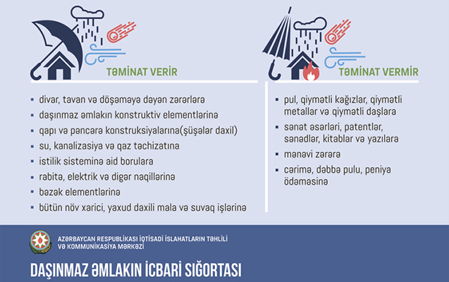 Hüquqi və fiziki şəxslərə məxsus tikililərin, yaşayış və qeyri-yaşayış sahələrinin, yaşayış evləri və binalarının, mənzillərin, habelə dövlət əmlakının sığortalanması 2011-ci ildə qəbul edilmiş qanuna əsasən icbari hesab edilsə də, bu ildən etibarən gündəmə gətirilib. Buna əsas səbəb kimi isə artıq bu sahədə elektronlaşmanın həyata keçirilməsinin nəzərdə tutulması göstərilir.