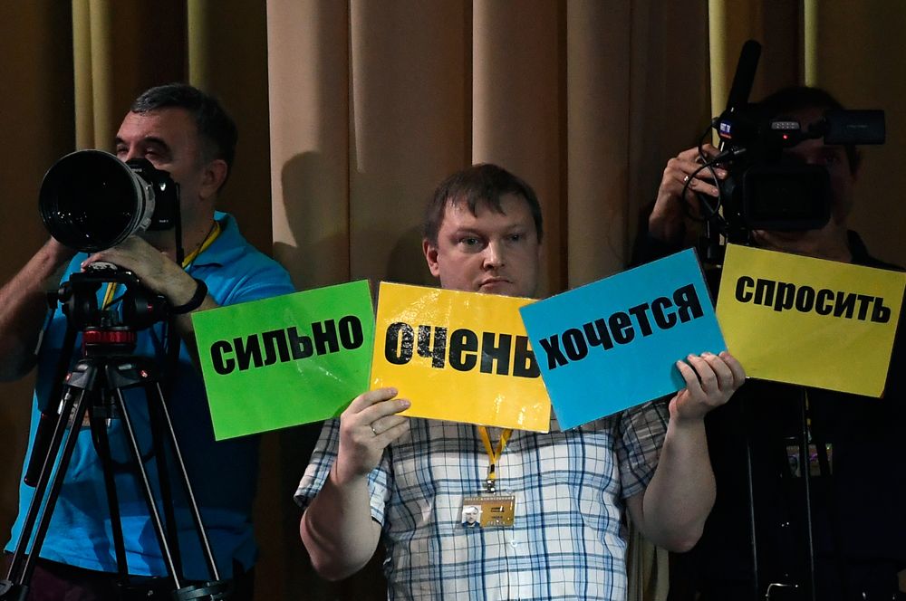 “Qafqazinfo”nun “Arqumentı i faktı”ya istinadən məlumatına görə, hər il olduğu kimi dövlət başçısı və onun mətbuat katibi Dmitri Peskovun diqqətini cəlb etmək üçün konfrans iştirakçıları rəngarəng geyinib və müxtəlif yazı və şəkilli plakatlar hazırlayıb. Ötən illərdən fərqli olaraq, bu dəfə jurnalistləri kiçik ölçülü plakatlarla kifayətlənməyə çağırıblar. Bu addım onların həmkarlarının rahatsız olmaması məqsədi ilə atılıb.