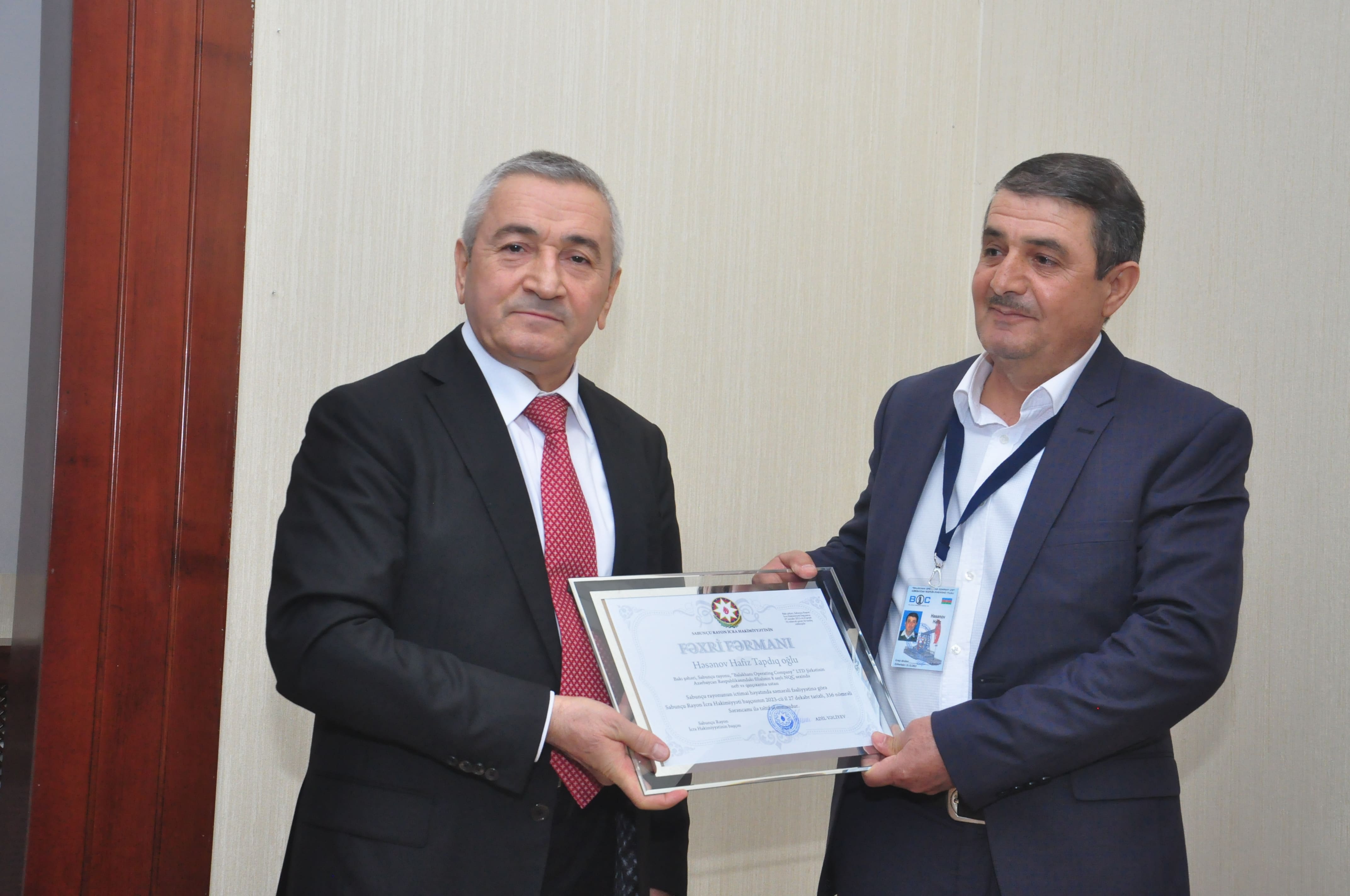 Sonda “Heydər Əliyev İli” çərçivəsində rayonun ictimai-siyasi həyatında fərqlənən bir qrup şəxsə Sabunçu Rayon İcra Hakimiyyəti başçısı tərəfindən Fəxri fərman və hədiyyələr təqdim olunub.